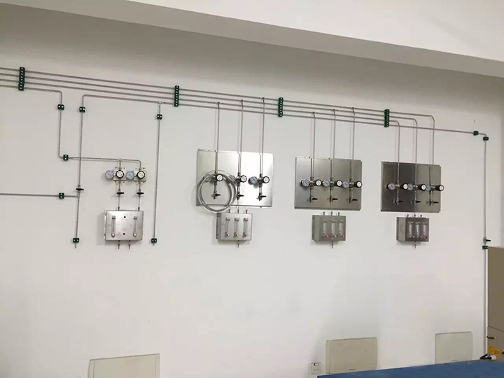 在現代化的實驗室中,為了完成實驗,需要用到多種分析儀器,如氣相色譜儀,原子吸收,原子熒光,氣—質聯用儀,ICP等等,其中這些儀器需要用到高純氣體,傳統的做法是采用單獨鋼瓶分散供氣的模式,這種供氣模式每臺儀器設備單獨配置氣體鋼瓶,分別符合每臺儀器設備的使用,但隨著近年來實驗室投資的不斷增加,儀器設備的很快增加,用氣量也逐年增加,傳統的供氣模式已經不好達到儀器設備增加的需求,同時分散供氣模式帶來的實驗室布局混亂,鋼瓶的頻繁替換也對實驗室的管理和維護造成了困難,為了解決以上兩個方面的問題,就需要一套安全性高且能實現集中分配供氣的系統完成從氣源向儀器的供氣,這就是實驗室高純氣體管道系統的功能所在。