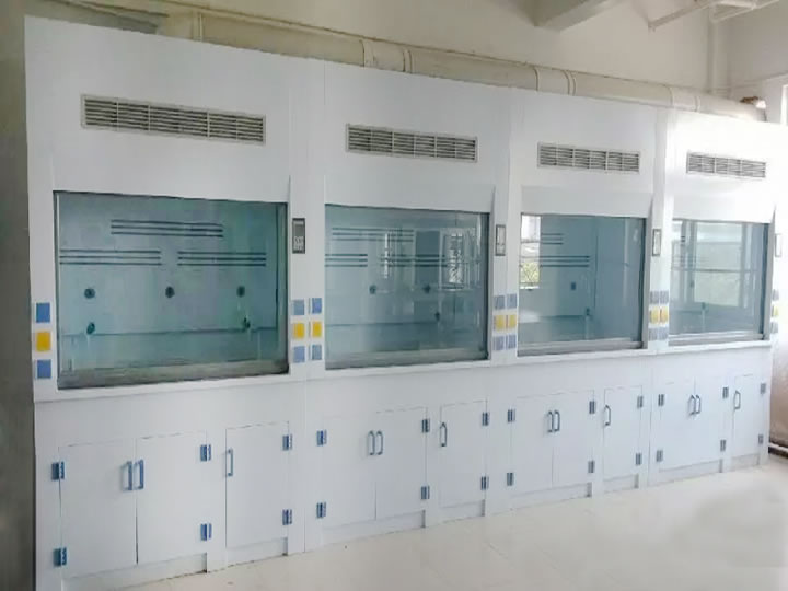 氣流板: 采用18mm厚通風柜專用抗倍特氣流板,安裝位置與角度需使排氣分布均勻,無死角,在標準狀況下,導流板上方與中、下方出風口排風量比例各約50±10%,以確保不同比重之氣體均能有效排除,另并具手動可調排風量比例設計,可提高中、下方出風口排風量比例至80%以上,以適應不同實驗之需求。