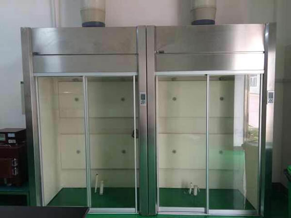 (5)傳動:雙懸玻璃門通過導(dǎo)軌、配重滑輪組、鋼索、配重等同步傳動,上下開啟靈活方便,噪音小。